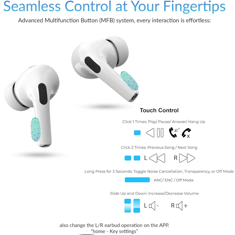 • تحكم في مستوى الصوت: قم بزيادة أو تقليل مستوى الصوت بسهولة من خلال تمرير إصبعك على السماعة، مما يتيح لك الحفاظ على تجربة الصوت المثلى دون انقطاع.