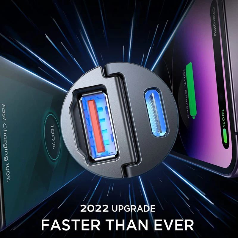 • تصميم مدمج: أصغر شاحن سيارة في فئتها، يسمح لك بتوفير المساحة في سيارتك دون فقدان الأداء.