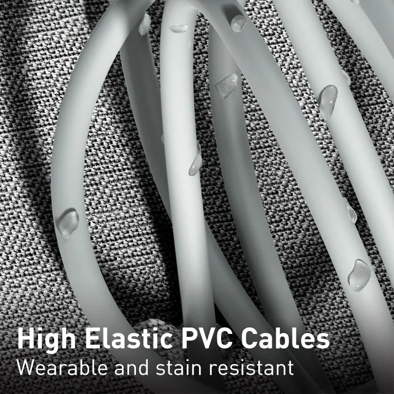 - جودة عالية: مصنوعة من PVC عالي المرونة، مما يجعل الكابلات مقاومة للاهتراء والبقع ويزيد من عمرها الافتراضي.