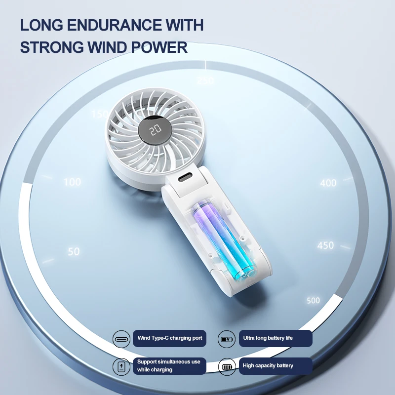 • اسم المنتج: مروحة محمولة قابلة للطي بشاشة رقمية
